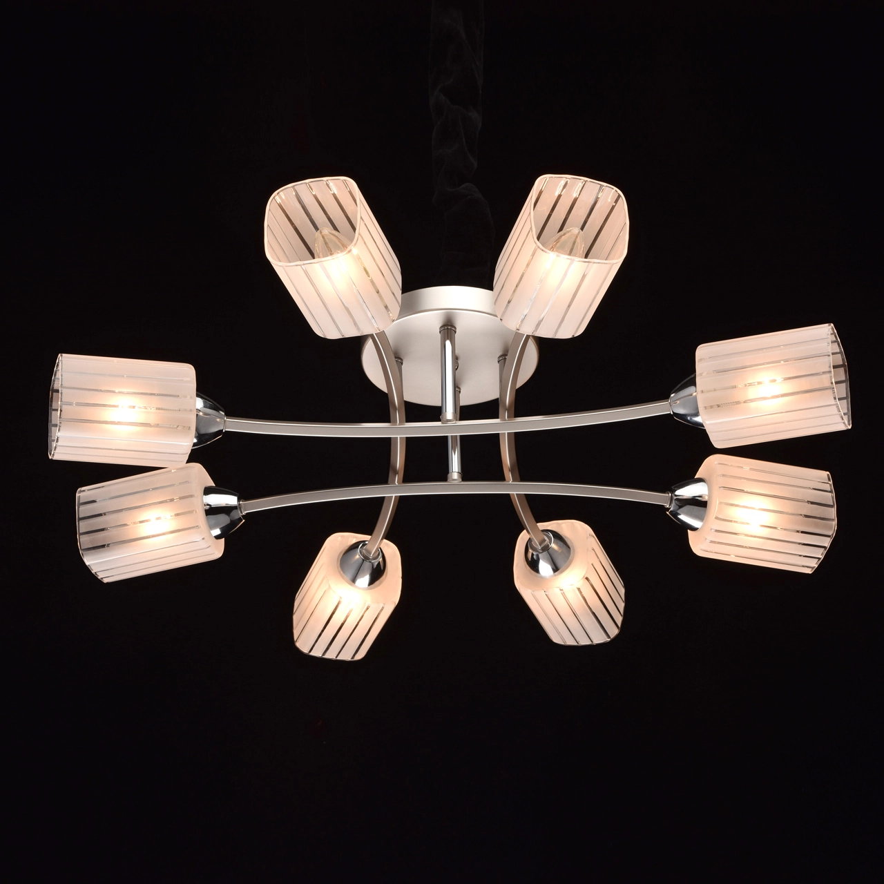 Артикул: 638012308; Бренд: De Markt; Коллекция: Олимпия; Стиль: Scandinavian; Тип светильника: Люстра потолочная; место размещения: Детская; Гостиная; Кухня; Квартира; Прихожая; Форма: Классическая; Тип крепления: планка; Степень защиты: IP20; Площадь освещения, м2: 24; Напряжение питания, V: 220; Количество ламп: 8; Тип ламп: накаливания, Накаливания; Тип цоколя: E14; Мощность ламп, W: 60; Общая мощность, W: 480; Световой поток, Lm: 5160; Цветовая температура, K: 2700; Материал каркаса: металл, Металл; Материал плафона: стекло, Стекло; Цвет каркаса: серебристый, Серебристый; Цвет плафона: белый, Белый; Лампы в комплекте: Нет; Диммирование: Возможность подключить - Да; Встроенный - Нет; Наличие пульта: Нет; Гарантия, мес: 12; Длина, мм: 700; Ширина, мм: 700; высота: 180; Высота потолочной чаши, мм: 30; Диаметр потолочной чаши, мм: 160; Высота плафона, мм: 110; Диаметр плафона, мм: 80; Вес, кг: 2.3; Вес упаковки, кг: 2.78; Длина упаковки, см: 44; Ширина упаковки, см: 25.5; Высота упаковки, см: 22; Штрихкод: 4250369157242